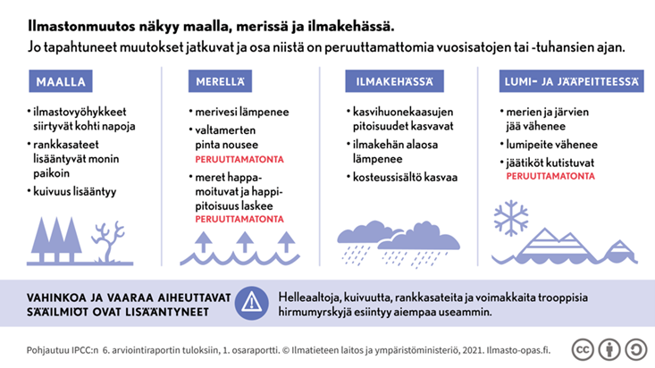 Raportin uutta antia ovat ilmastonmuutoksen alueelliset kuvaukset, joten se sopii taustamateriaaliksi päätöksentekijöille erityisesti riskien arviointia ja päätöksentekoa varten.