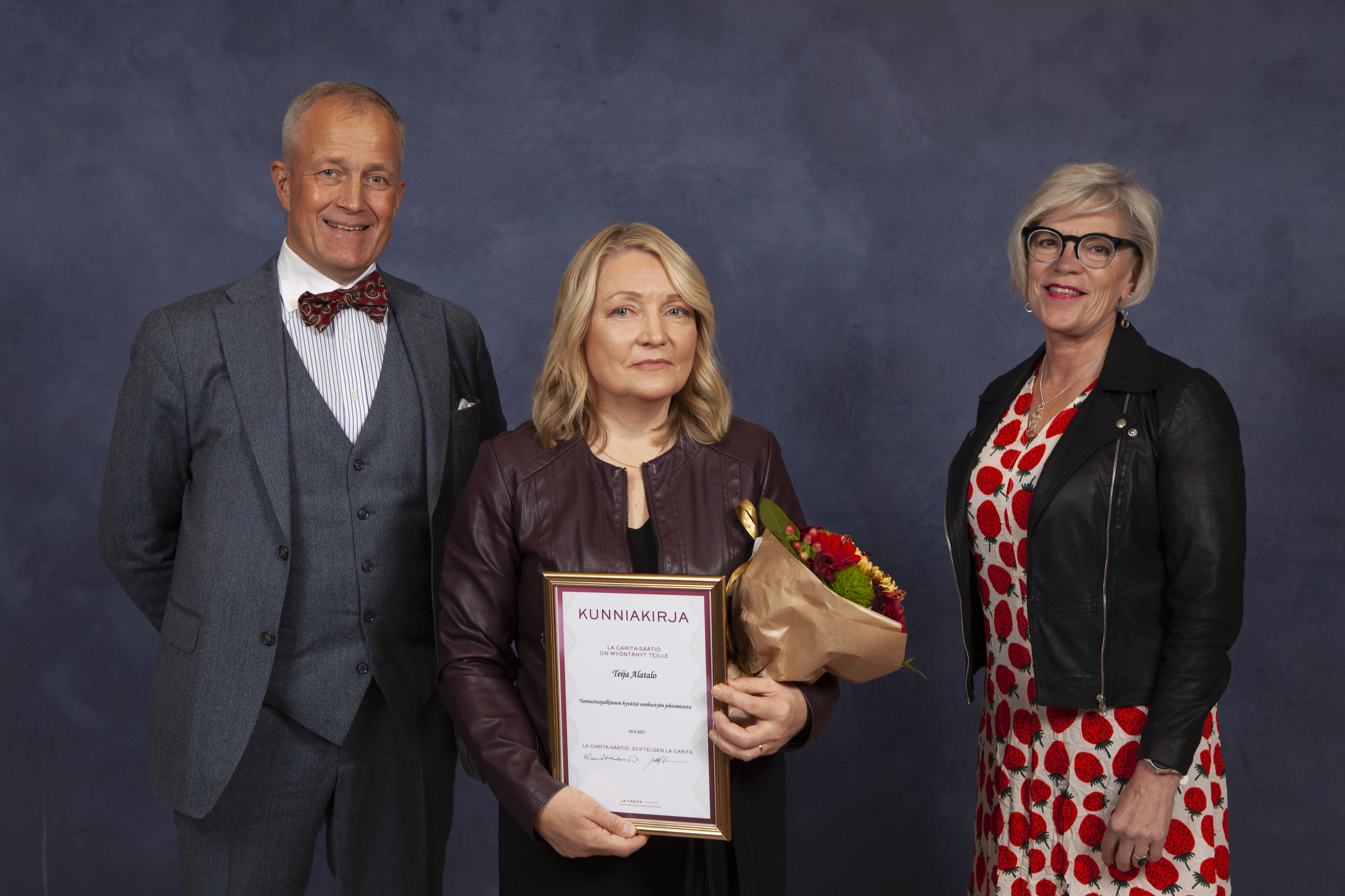 Torniolainen Teija Alatalo palkittiin tänään La Carita -säätiön tehyläisen Vanhustyön johtajan tunnustuspalkinnolla. Palkinto luovutettiin Helsingissä webinaarissa, jonka aiheena on hoitotyön johtaminen.