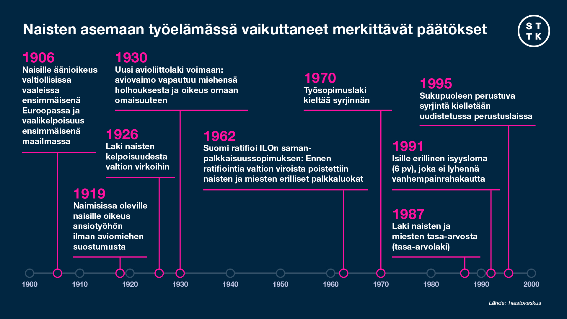 Sotien jälkeen työntekijöistä oli pula, ja Suomessa alettiin laajalti pohtia, kuinka paljon vähemmän naisille oli aiheellista maksaa. Työntekijäpuolella monet ajattelivat, että naisten palkka voisi olla jopa yhtä suuri kuin miesten! Työnantajapuoli taas oli sitä mieltä, että sopiva palkka naisille oli puolet, tai korkeintaan 70 prosenttia miesten palkoista. Aiheesta kiistelivät myös poliitikot ja yhteiskuntavaikuttajat.