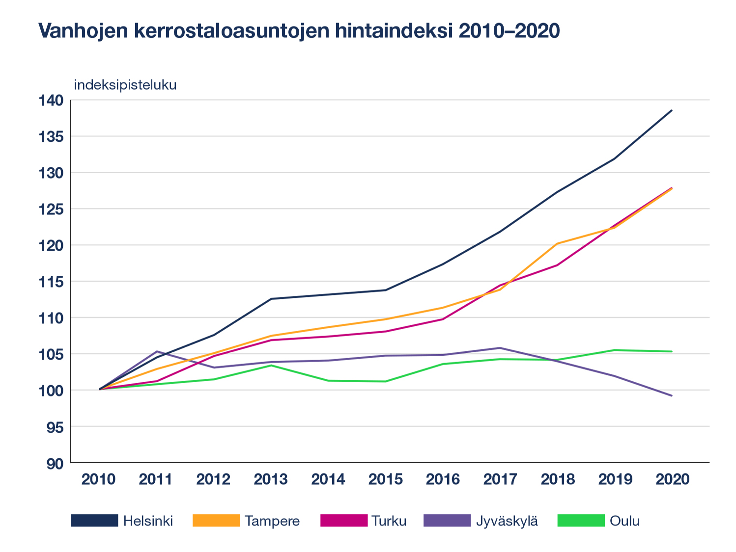 Tilastokeskuksen graafista havaitaan, että ongelma koskee erityisesti Helsinkiä, Tamperetta ja Turkua. Muut suuret kaupungit ja maakuntakeskukset ovat selvinneet vähemmällä. Kalliista hintatasosta johtuva muuttoliikkeen vaikeus onkin siten erityisesti Helsingin ongelma.