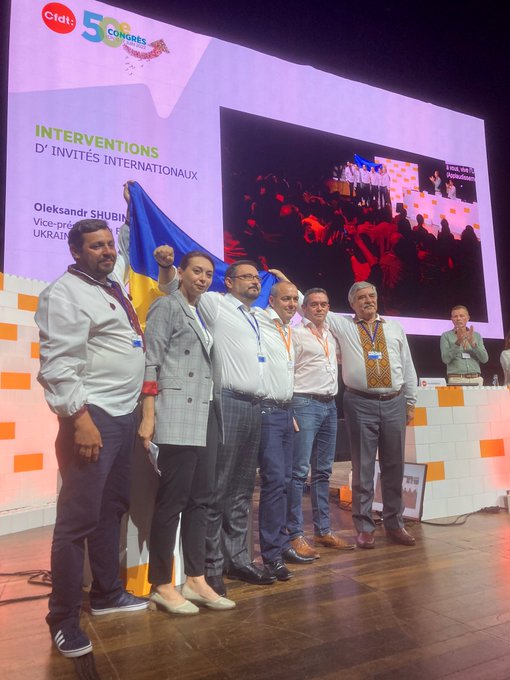 Kansainvälisistä vieraista suurimman huomion – ja kongressin 1700 vieraan raikuvat aplodit – saivat luonnollisesti ukrainalaiset. Ukrainan puolesta – ja Venäjää vastaan – otettiin muutenkin hyvin vahvasti kantaa. CFDT, jossa mukana on myös maan rautateiden työntekijöitä, järjesti aikaisemmin keväällä myös oman junakuljetuksen avustustavaroita Ukrainaan.