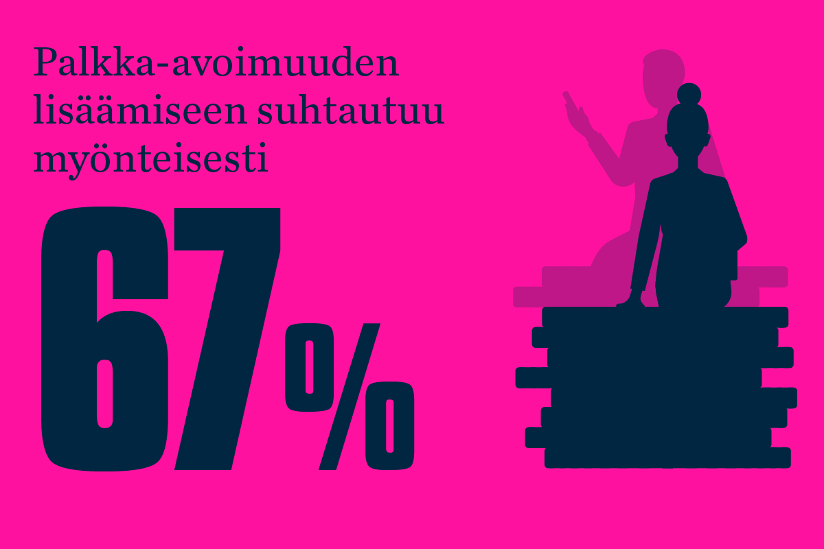 Ratkaisu voisi löytyä palkka-avoimuuden lisäämisestä. Kyselyyn vastanneista 67 prosenttia suhtautuu jokseenkin tai erittäin myönteisesti siihen, että palkkatiedot kerrottaisiin työpaikoilla nykyistä avoimemmin. Myönteisimpiä palkka-avoimuudelle ovat alle 35-vuotiaat (70 %) eikä suhtautumisessa ole juurikaan eroa miesten ja naisten välillä.