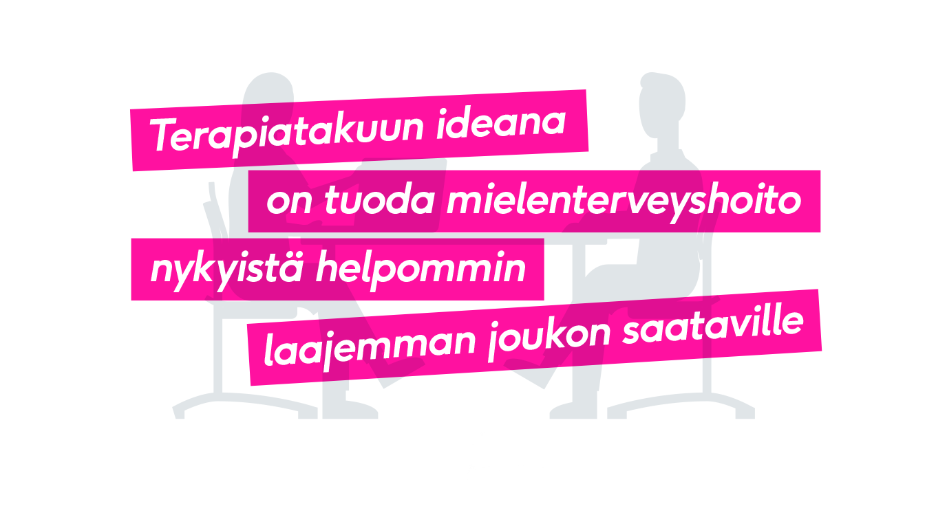 Osa työelämän kuormittavuuden kanssa kamppailevista ihmisistä tarvitsee hyvinvointinsa ja työkykynsä tueksi mielenterveyspalveluita. Mielenterveyshoitoon pääsy on Suomessa erittäin vaikeaa. Yksi keskeinen ratkaisu tähän ongelmaan on terapiatakuu. Se tarkoittaa oikeutta päästä nopeasti palveluiden piiriin perusterveydenhuollossa.