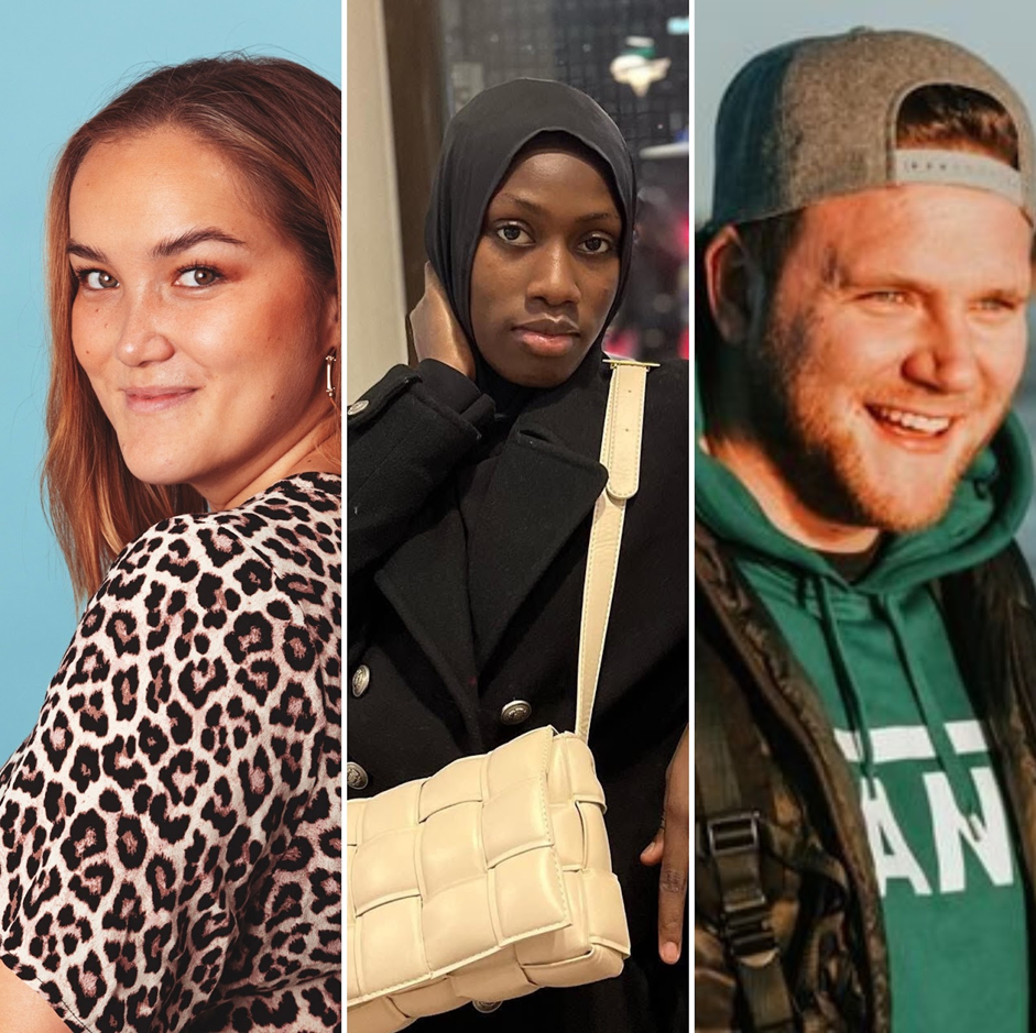 Kuvassa vasemmalta oikealle: kolme Muutostöissä-kampanjaan osallistuvaa vaikuttajaa Jasmin Ngo, Aishah Muhammed ja Dave Cad.