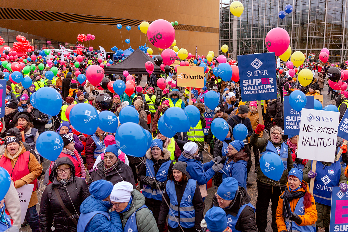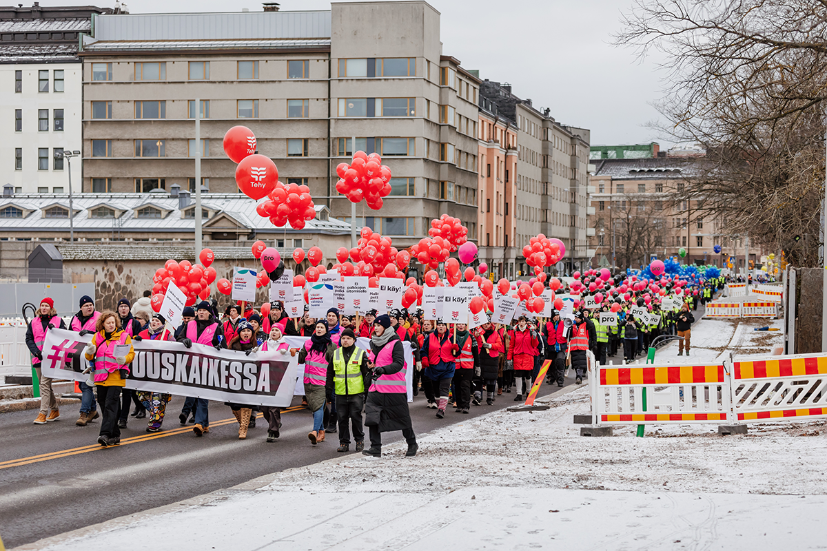 STTK järjesti lauantaina 18.11. Kohtuus kaikessa -mielenosoituksen Helsingissä. Marssi kulki Olympiastadionin Mäntymäen kentältä Kansalaistorille. Mielenosoituksella vastustettiin hallituksen kaavailemia heikennyksiä työntekijöiden oikeuksiin ja kohtuuttomia leikkauksia sosiaaliturvaan. Se keräsi yli tuhat osallistujaa ympäri Suomea.