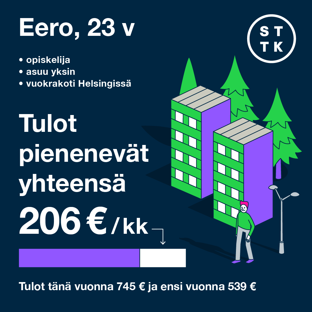 Opiskelijoiden toimeentuloon ollaan tekemässä iso leikkaus siirtämällä opiskelijat pois yleisen asumistuen piiristä takaisin opintotuen asumislisälle – takaisin menneisyyteen. Muutos laskee opiskelijoiden tuloja varsinkin sen vuoksi, ettei asumislisää todennäköisesti saa kesäisin.