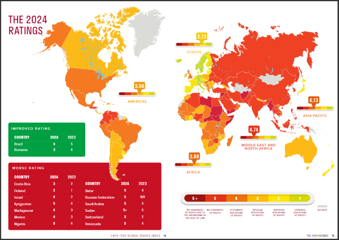 Julkaisu löytyy kokonaisuudessaan täältä. https://issuu.com/ituc/docs/2024_ituc_global_rights_index_en