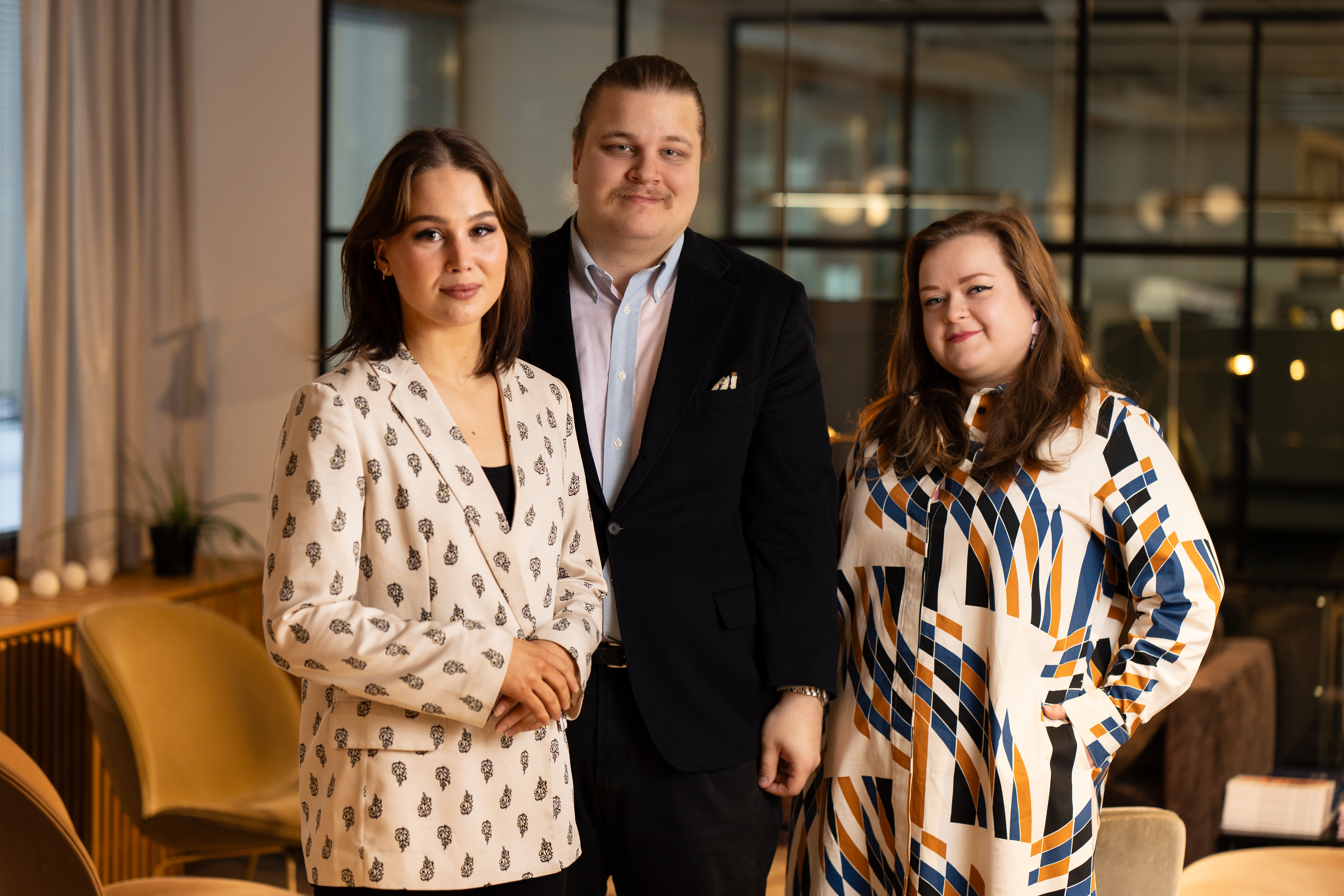 STTK-opiskelijoiden puheenjohtajana toimii Valtteri Mäyrälä (Tehy) ja varapuheenjohtajina Janette Meriläinen (Ria, vasemmalla) sekä Maria Malmgren (Tehy, oikealla).